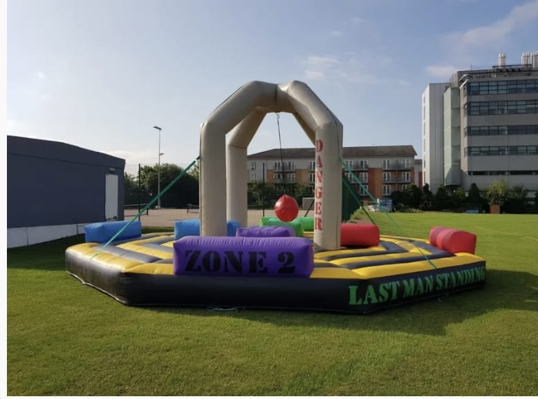 Demolition Wrecking Ball for hire in Essex, Kent and London This is Total Wipeout fun at its very best, as four challengers do their best to dodge the swinging wrecking ball and be the victorious last man (or woman) standing. It’s all about balance and bending, strategy and skill as you try to catch the ball without it catching you out. Gain control and you can target the other contestants for demolition as you try to knock them down It’s a Knockout style. And don't worry, everyone gets a soft landing on the inflatable bed, so only their egos will get bruised! Demolition wrecking ball game hire is a great addition to any funfair or fete. Offer a small prize for each winner, or play winner stays on to see who is the longest-reigning champion. It’s as much fun to watch as it is to play, drawing huge crowds and adding an amazing energy and atmosphere to the day. Don’t forget to add a popcorn cart or a slush stall to your order to cash in on this captive audience. Why not hire a demolition wrecking ball game for your team building day? It’s a great way to bring out your colleagues’ competitive instincts and give the team a chance to bash their boss. Everyone will get involved, shouting encouragement to their team-mates and loving the biff-bash fun. For even more knockabout competitive games, check out our last man standing total wipeout sweeper, or our 40ft inflatable assault course. For the best action-packed crowd pleasers in Essex, talk to our team today. This unusual and original inflatable is always in demand, so if you want to land a knockout blow and demolish your competition, book as early as you can. Just click below for details and availability.